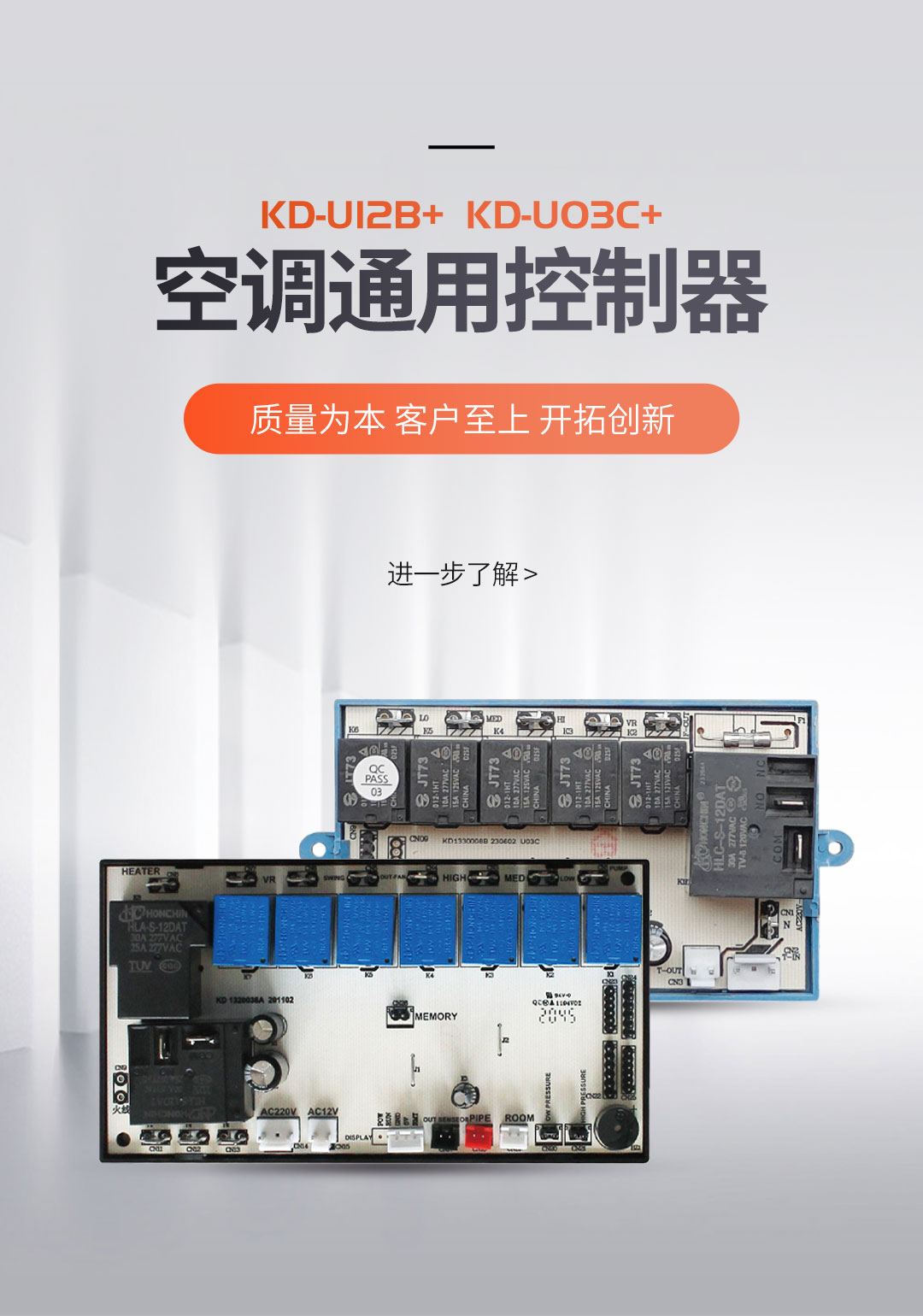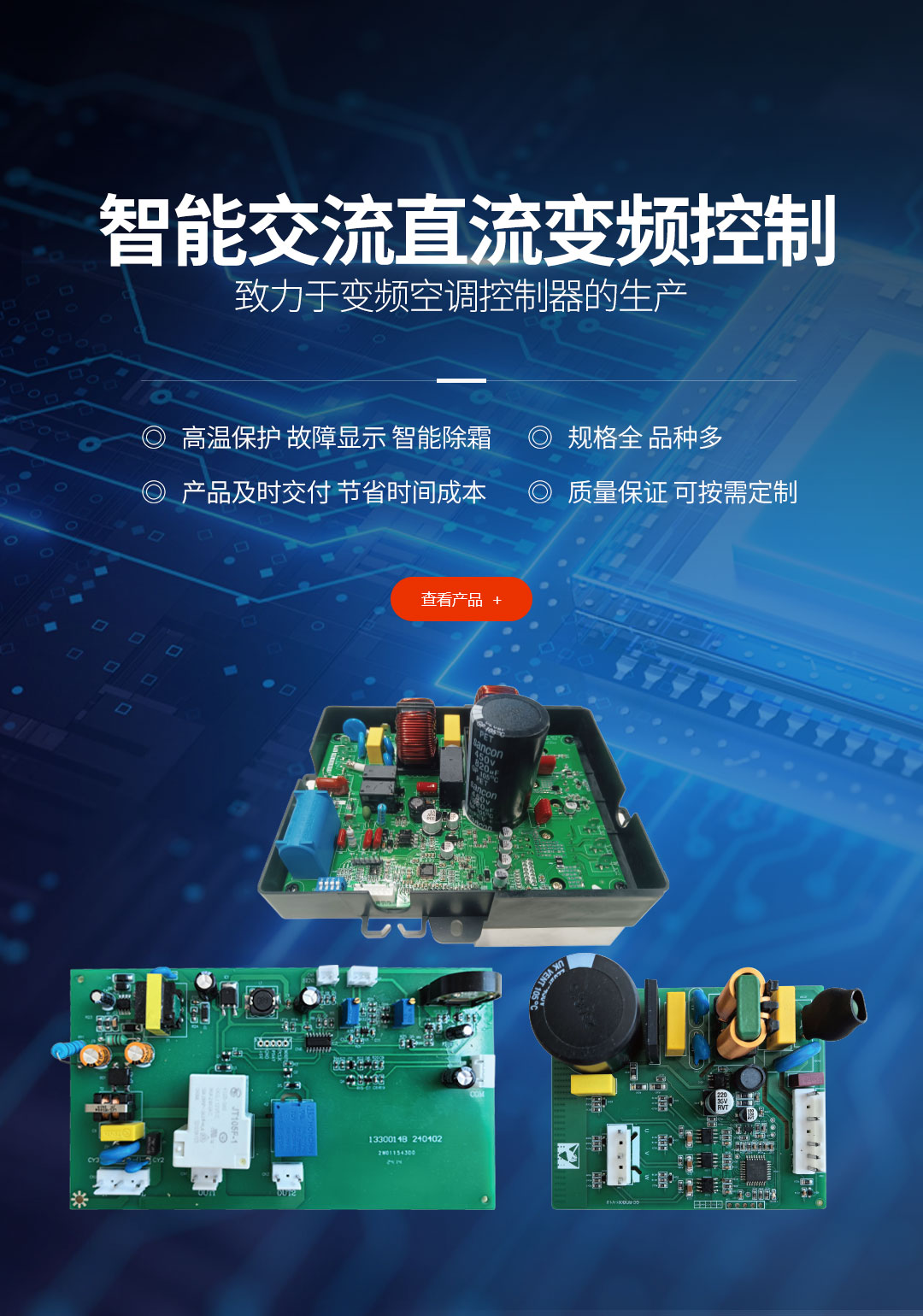 公司目前有多種專利,并具備生產及工藝技術。年產家電控制器一百萬套,產品廣泛用于空調、中央空調、電熱水器等領域